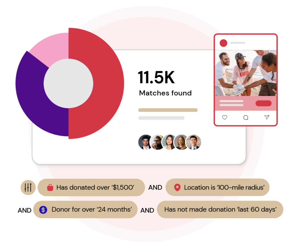 Target your audience with personalized messages and actions to deliver relevant experiences to your donors.